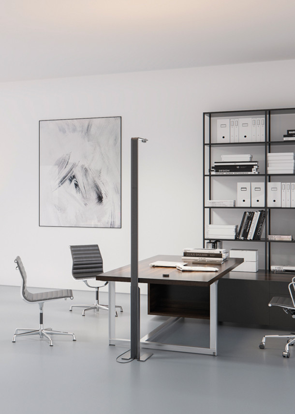 Rod anodised alu Base steel grey painted Cable black Regulation motion sensor Control system with DI-ON remote control / dimmable in 7 steps