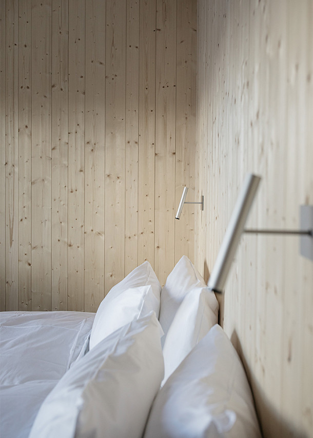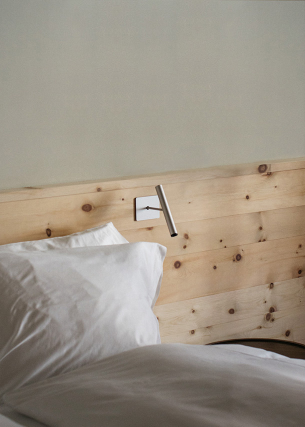 Das neu erstelle Hotel Maistra 160 befindet sich an prominenter Lage im Dorf Pontresina. Vorbilder in der Hotelarchitektur des Engadins haben den Entwurf des Neubaus geprägt, wurden im Entwurfsprozess aber neu interpretiert. In Zusammenarbeit mit dem Raum- und Lichtplaner Martin Nievergelt durfte das Schweizer Leuchtenunternehmen BALTENSWEILER eine Wandleuchte eigens für dieses Objekt entwickeln.