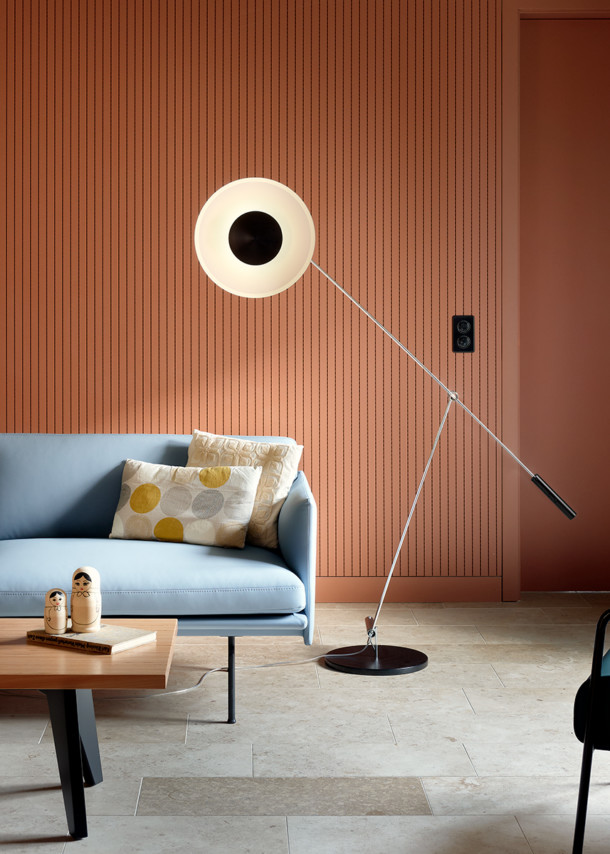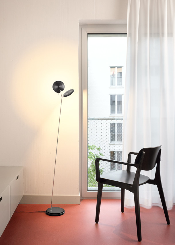 Das Palliativzentrum umfasst 42 Einzelzimmer, organisiert in kleinen, wohnähnlichen Gruppen, ergänzt durch ein Tageszentrum und zwei Arztpraxen. Die Innenräume sind mit viel Sorgfalt gestaltet: Naturbelassene Materialien, warme Farbtöne und hochwertige, zurückhaltende Möbel schaffen eine beruhigende, wohnliche Atmosphäre. In den Zimmern sorgen die Stehleuchten OYO für individuell regulierbares Licht und unterstützen so das persönliche Wohlbefinden. Im Aufenthaltsraum setzt die ikonische TYPE 600 als Leuchten-Highlight einen gestalterischen Akzent.